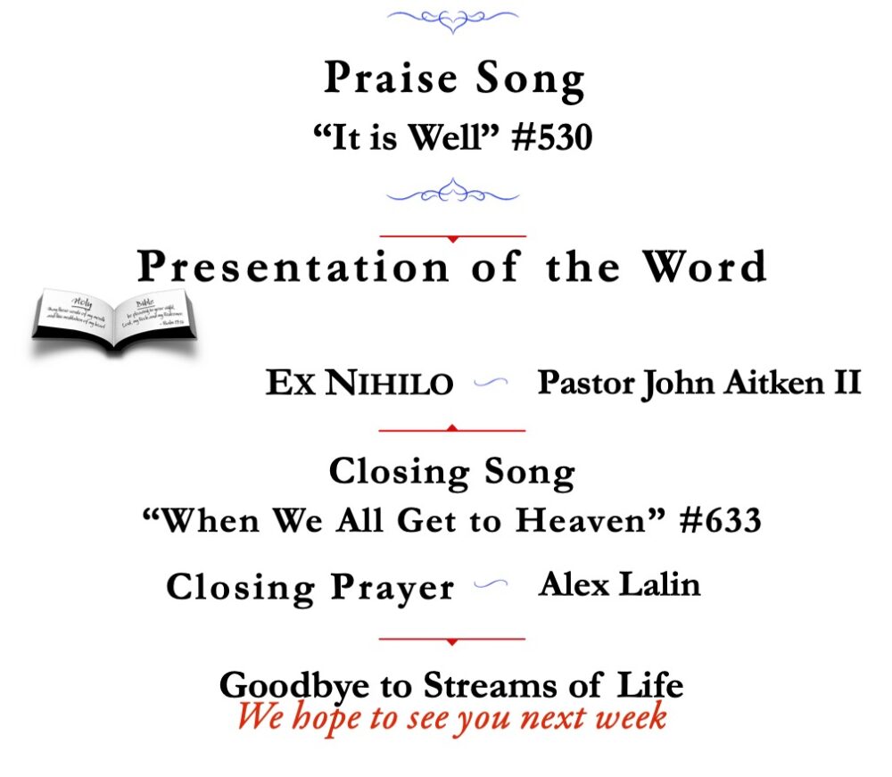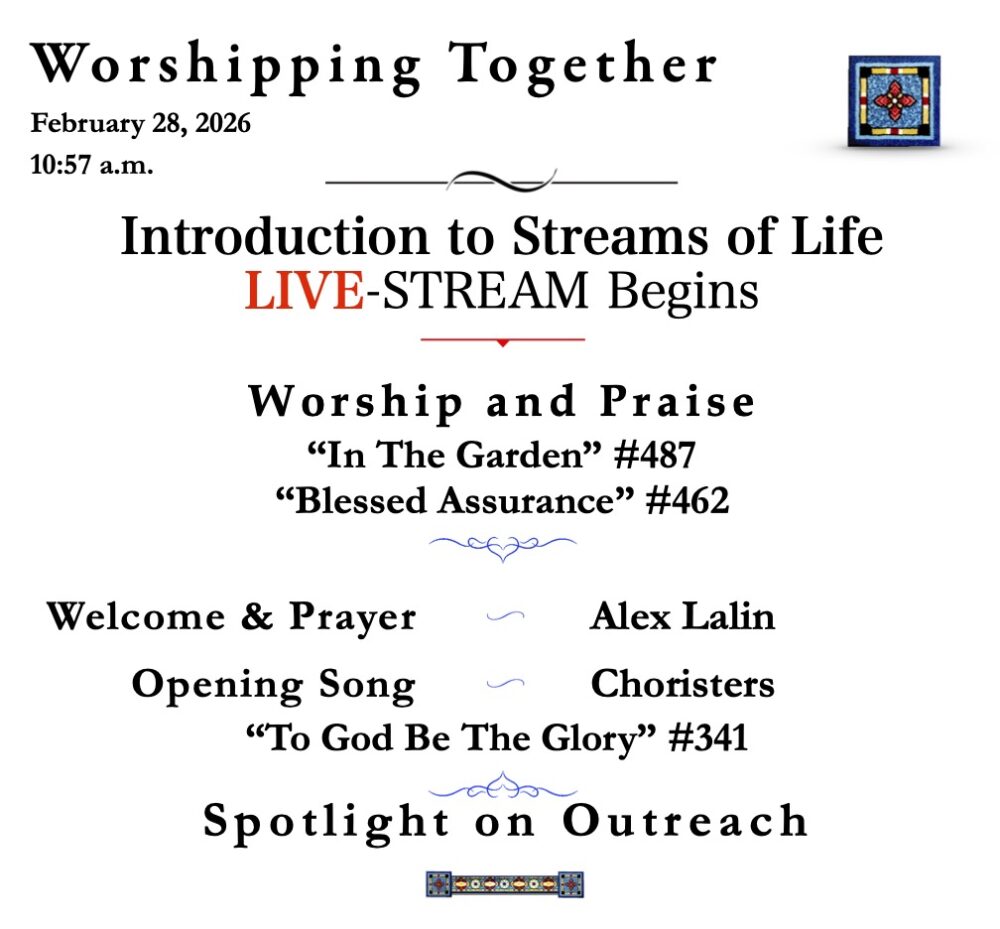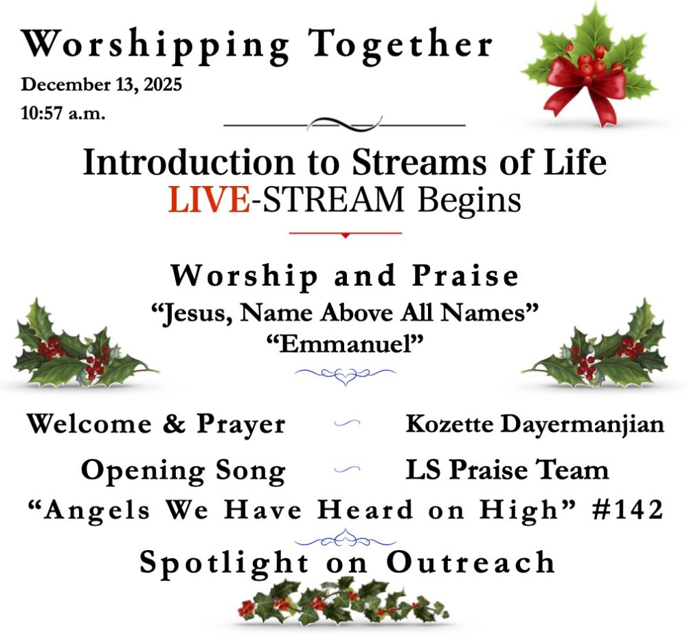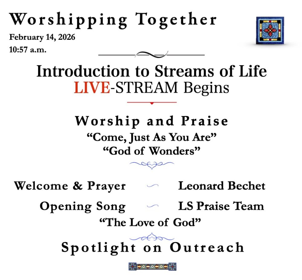 Join us for a message from the Bible, and afterward Intercession Prayers for all in need. If you would like Pastor John to pray for you, send in a Yellow Card with your prayer request. CLICK HERE to go to the Streams of Life YouTube Channel to partake in Call to Prayer.
